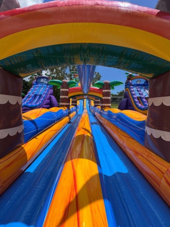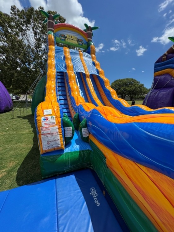 The Tiki Rampage Dual Lane is our Flagship Waterslide for hire!