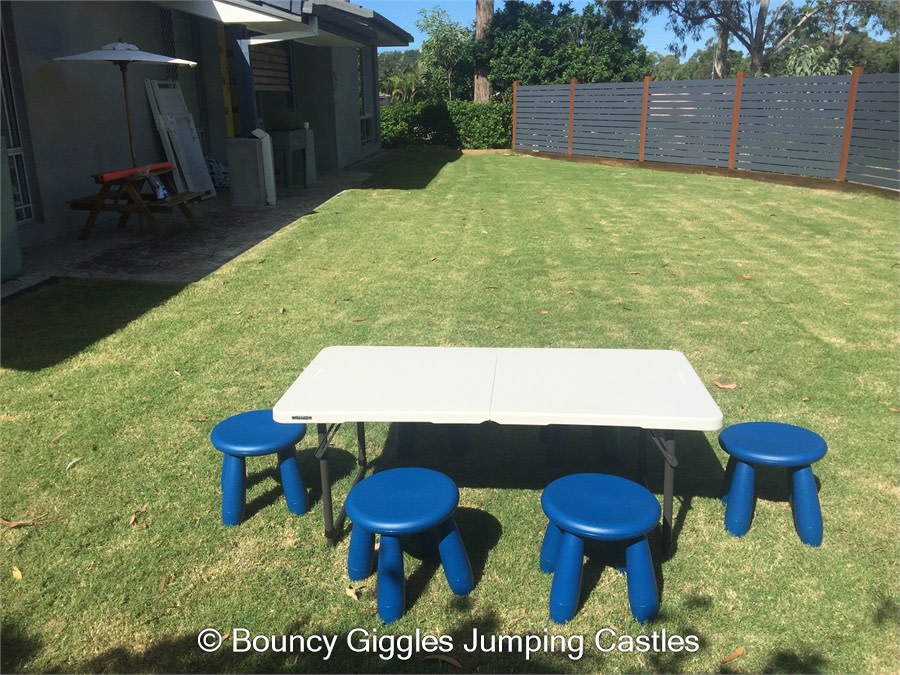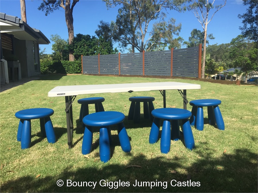 Need seating options for the kids at your party? Buying enough tables and chairs can be expensive and then you have to find somewhere to store them afterwards! Why not hire ours! Each Table comes with 6 stools. The table height is adjustable and at it's lowest height is perfect for the stools and the little ones to sit comfortably around the table.