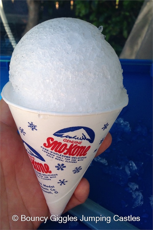 We provide 50 serves with the hire of the Deluxe Snow cone machine. Servings include snow cone cups, straws and syrups.